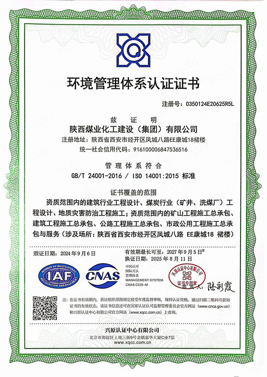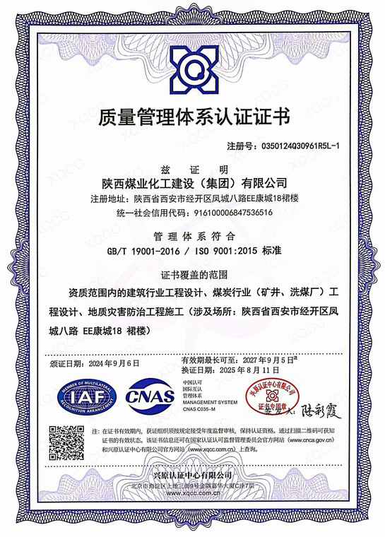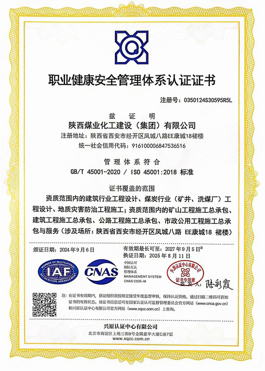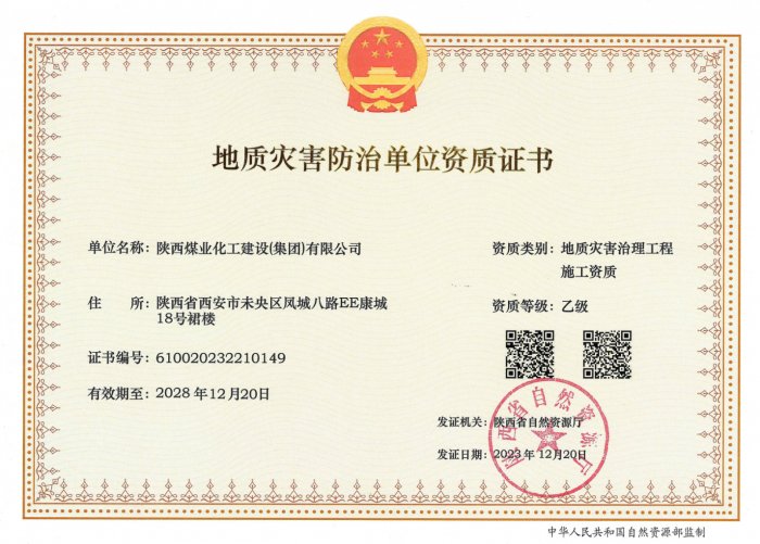 拥有建筑工程施工总承包、矿山工程施工总承包“双特级”资质和建筑行业甲级、煤炭行业(矿井、选煤厂)专业甲级设计资质;市政公用工程、钢结构工程、起重设备安装工程、环保工程、建筑装修装饰工程、地基基础工程、古建筑工程一级承包资质;机电工程、公路工程、冶金工程、铁路工程、水利水电工程、石油化工工程、电力工程、隧道工程二级承包资质,同时具有特种工程专业承包资质。